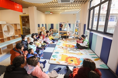 作为示范型儿童友好社区,市北社区内亲子阅读区、体能训练室、植物苗圃园等“充电”空间丰富多彩,为社区儿童提供了便捷、丰富的活动载体。