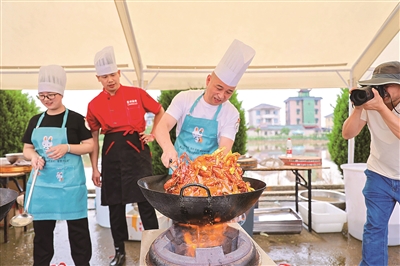 从虾塘出来,一阵霸道的香气立刻俘获了不少小主播的注意力。原来是“虾王”烹饪争霸赛的大厨们正大展身手。每一份龙虾出锅后,都受到了孩子们热烈的欢迎,麻辣、酸辣、凉拌……美味的龙虾,令人垂涎欲滴。品尝美食一事,似是“无师自通”。孩子们戴上手套,也学着家长一个接一个地剥虾、吃虾,大小吃货的快乐在这一刻同频。