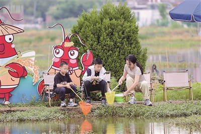 除了孩子,家长们也同样兴致盎然,在田埂边悠闲地钓虾,让他们仿佛回到了童年时光,重温了那份无忧无虑的闲情逸致。