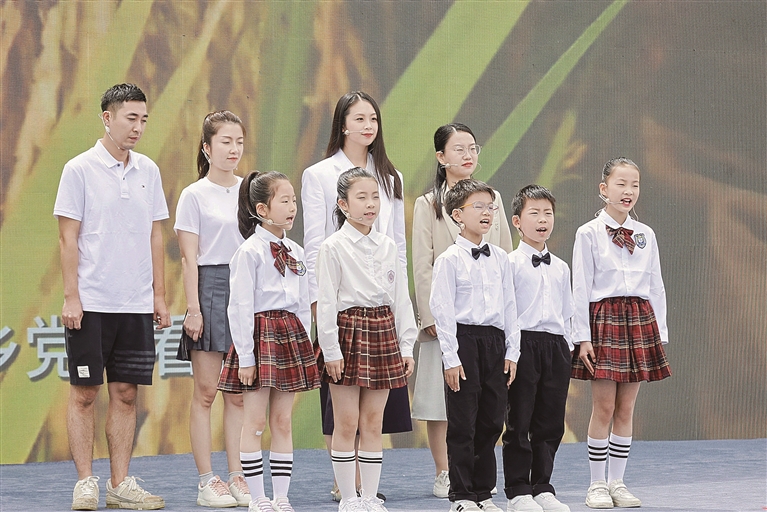 萧山融媒小主播们与党湾镇第一小学的老师同学们、党湾镇青年干部,为大家带来“乡约四季——党湾研学线路推介”,一首《党湾四时皆有景》,以演唱、深情朗诵的方式,让大家看到了不一样的党湾。