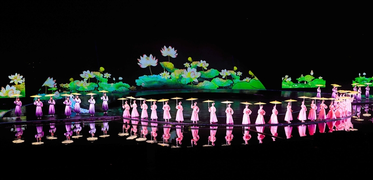 湘湖浪漫夜色中,这场“科技+文化”的视觉盛宴,借助全景升降倾斜机械舞台、多维数控激光喷泉、270度移动全息影像、全包裹式水火特效、空中无人机编队创意表演,呈现一个如梦如幻的艺术世界,让现场观众直呼“震撼”。