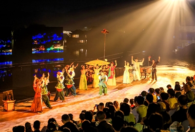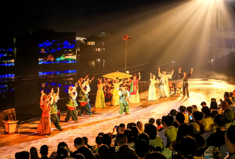 中国首部亚运遗产大型数智湖景演艺秀《湘湖·雅韵》,6月30日晚在湘湖湖山广场正式公演。观众跟随数智人火炬手“弄潮儿”的脚步,跨越时间长河,体验跨湖桥文化、良渚文化、吴越文化、宋韵文化直至现代社会文明的薪火相传。