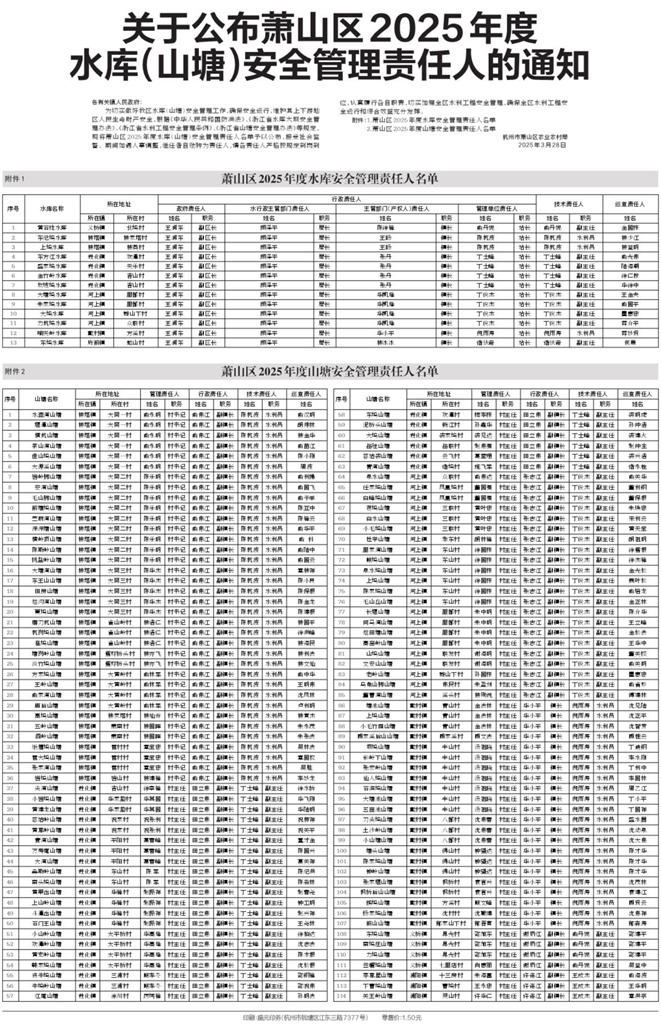 水库(山塘)安全管理责任人的通知