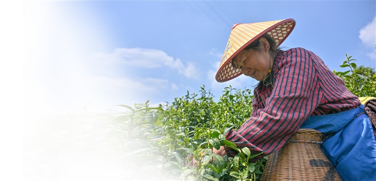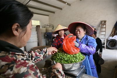难得空闲,女工们围坐院中冲泡新茶。有人用手机给家人展示杯中舒展的茶针,热气袅袅升起时,山风裹着鸟鸣掠过她们微驼的背影。