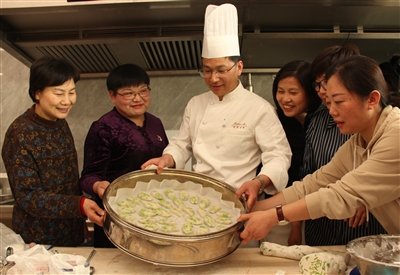近期,萧山农商银行笑盈活力社新一期课程开课,课程内容包括毛笔书法、瑜伽、插花、中国画、中西面点制作、声乐、健身气功等。图为学员在萧山宾馆中西面点厨师长沈加海老师的指导下,制作碧绿豆瓣糕。