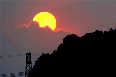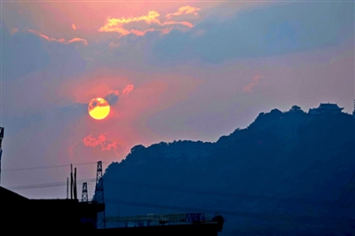 @大海 红日西坠 前阵子杭州连续35天高温,而风亦不知去了哪。你看,落山的太阳都被它自己烤得猩红。拍着这红艳艳的落日,叹息:唉!明天又是一个大热天! (摄于9月11日) |