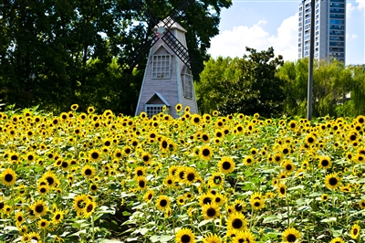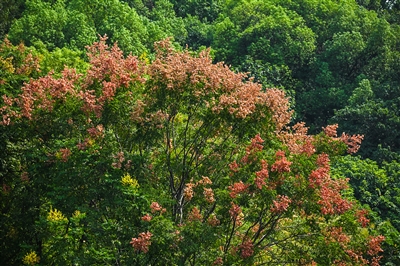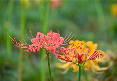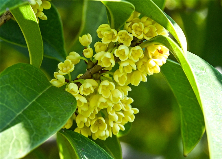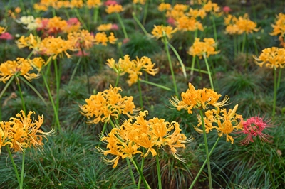 最夺目的当属道旁的黄山栾树,一树树红霞缭绕。蒴果的三片苞片从青绿到绯红,层层叠叠地燃烧在枝梢,成了秋日最张扬的旗帜。林下,成丛的黄色石蒜花破土而出,纤细的花瓣带着丝绸般的反卷,在幽暗处兀自明亮,它们见花不见叶,决绝而孤美,为渐凉的天地添上一笔神秘的暖意。若细嗅,空气里已渗入一丝极清浅的甜香——那是桂花的试探,已有零星花朵在叶腋间悄然绽放,预告着即将席卷全城的香阵。