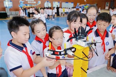 无人机编队划破长空,机器人与学生同步起舞……9月26日,湘师实验小学化身一座“未来实验室”,正式开启“AI启智 创享未来”人工智能通识教育课程。全校2000个孩子在沉浸式体验中触摸科技脉搏,在动手实践中激活创新思维,一步步叩响通往未来的大门。这堂生动而深刻的人工智能启蒙课,不仅为孩子们打开了探索智能世界的一扇窗,更以扎实的实践为人工智能通识教育如何实现“叫好又叫座”提供了示范样本。