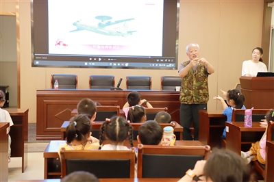 而在旁边的会议室,另一位老兵爷爷正配合视频讲解九三阅兵仪式上的装备奥秘。“这是坦克,这是无人机……”孩子们睁大眼睛,仿佛置身阅兵现场。到了提问环节,他们纷纷举起小手:“爷爷,飞机为什么能飞那么高?”“解放军叔叔怎么走得那么整齐?”面对这些充满好奇的问题,老兵爷爷笑着逐一解答。“咱当兵的人,有啥不一样……”随着嘹亮的军歌声响起,现场气氛愈加热烈。老兵爷爷鼓励孩子们:“你们要好好吃饭、锻炼身体,做和平的小使者!”话音刚落,孩子们纷纷回应:“长大后我要当解放军叔叔!”“我要保护国家!”稚嫩的童声里,满是对强国力量的向往。