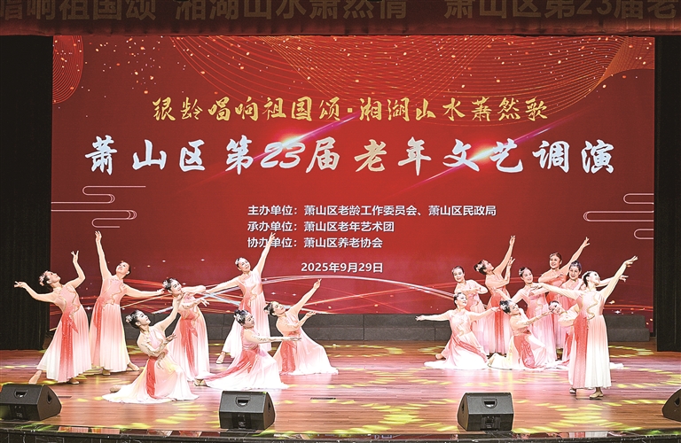 日前,以“银龄唱响祖国颂,湘湖山水萧然歌”为主题的萧山区第23届老年文艺调演在永兴剧场举行。来自镇街组和部门社团组的老年朋友们欢聚一堂,倾情演绎了四十余个精彩节目,以饱满的热情共同迎接国庆佳节的到来。