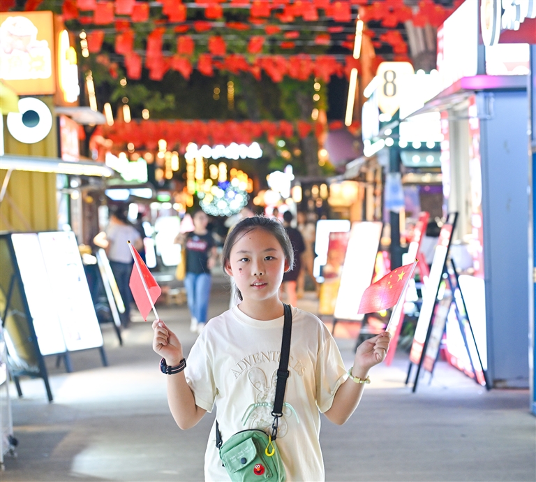 10月1日,义桥镇昇光村2400余位村民齐聚一堂,共同拍摄全村福,庆祝新中国76周年华诞。五星红旗前,市民纷纷驻足留影,定格家国同庆的美好瞬间;人民广场上,夜幕降临,音乐喷泉在璀璨灯光的映照下如灵动仙子翩翩起舞,吸引众多观众驻足欣赏;湘湖畔,摩托艇、桨板等水上运动热火朝天地开展着,游客在碧波间尽情体验运动乐趣;城河公园里,千盏花灯点亮夜色,宛如繁星洒落人间,亲子家庭一起猜灯谜、品月饼,尽享温馨欢乐时光。