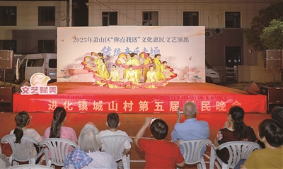 14日晚,2025年萧山区“你点我送”文化惠民文艺演出暨进化镇城山村第五届村民晚会热闹开演。晚会既有专业团队带来的精彩演绎,也有村民自编自演的特色节目,现场掌声、喝彩声不断。 首席记者 唐柯 摄