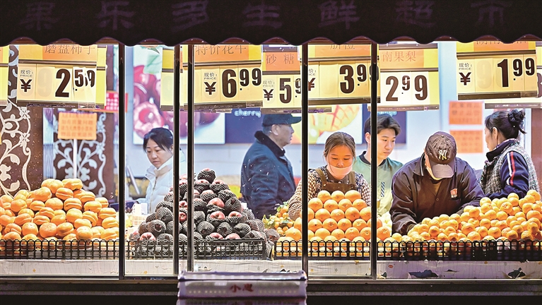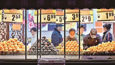 图为12月10日,消费者在天津市滨海新区的一家超市选购商品。