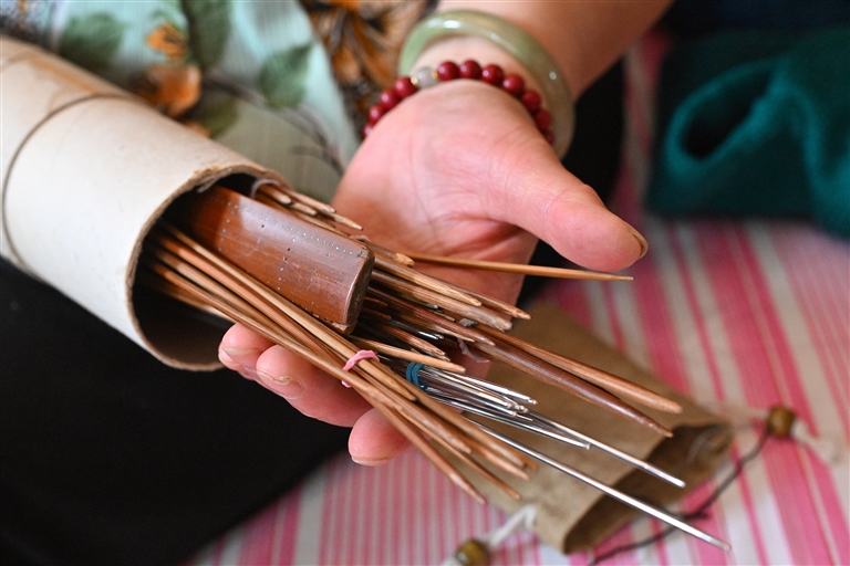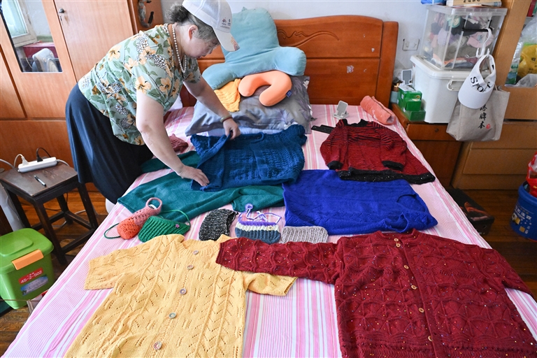 许凤英天生闲不住,喜欢动手动脑。退休之后,编织依然是她生活的重要部分,前些年她又学会了钩针,作品从往日主打的毛衣,拓展到了更多样的小物件:帽子、围脖、杯套、手机袋……她还将这份温暖带进社区,积极参加公益活动,把亲手织成的手机袋送给老年朋友们。针线穿梭间,不仅延续了传统手艺,更连起了人与人之间的情谊,让温馨在手作中不断传递。