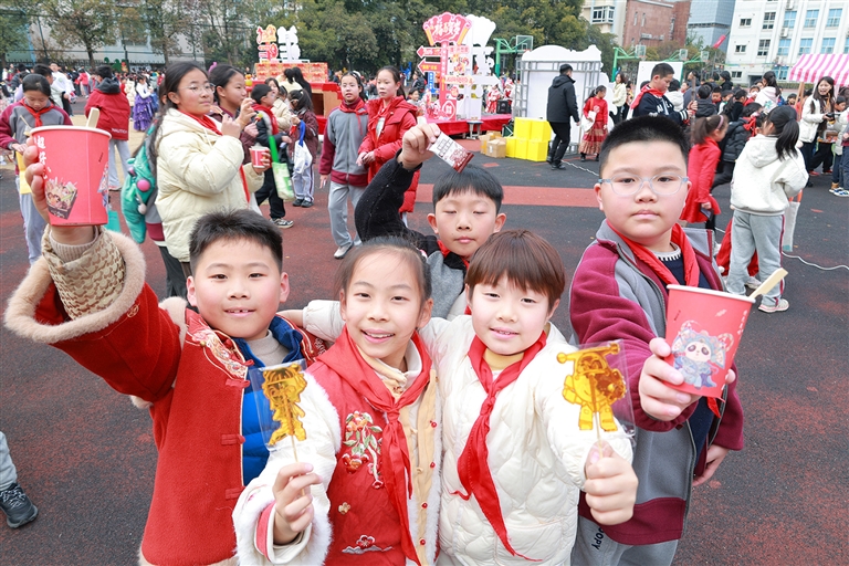 岁暮天寒,年味渐浓。近日,我区多所学校把热热闹闹的年味市集引入校园。活动现场,不仅有舌尖上的美味、脑洞大开的创意、趣味满满的游戏,更有着孩子们用努力换来的甜蜜收获。农博会、元气集市、年货节、新春市集,让校园的每一处角落都洋溢着欢声笑语,定格成冬日里最温暖的校园图景。