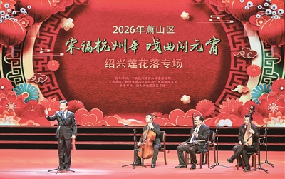 2日晚,区文旅局举办的“宋福杭州年 戏曲闹元宵”绍兴莲花落专场精彩上演。中国曲艺家协会副主席、莲花落领军人物翁仁康携手我区青年演员朱仲山、喻可,表演了《说也说不清楚》《楼上楼下》《寿堂对课》《分爹》《三个巴掌》等经典曲目。演员们的精彩表演,赢得了观众的阵阵掌声。
