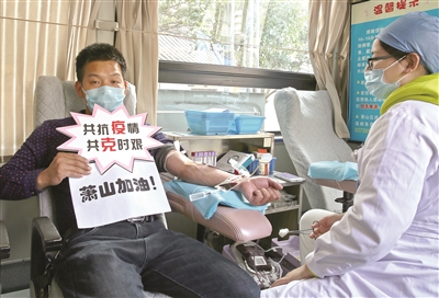在江寺公园,市民以无偿献血的方式支持战“疫”。记者 郭立宏 摄