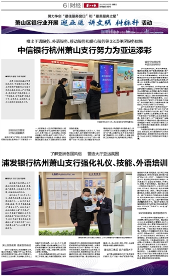 浦发银行杭州萧山支行通过不断提升服务品质,提高客户满意度,以饱满的工作热情,迎接亚运会的到来。