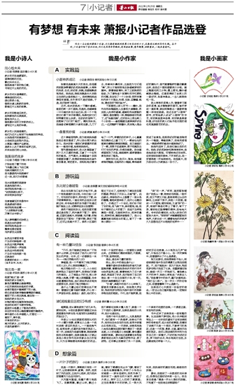 作为一名合格的萧报小记者,不仅要有敏锐的观察力和良好的口才,还要有过硬的写作本领。在平时,小记者们除了参加活动,作文也写得非常精彩,有阅读故事,童年趣事,诗歌童话,一起来看看吧。