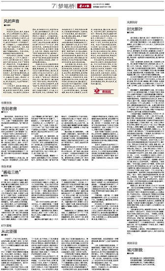 风常去的地方,是树梢。它在树叶间捉迷藏,从一片叶子,跳到另一片叶子,我们根本看不见它,但我们看到了树叶的抖动,听到了“哗哗啦啦”,那就是风声。风也喜欢翻动书本,一本摆在书桌或公园长椅上敞开的书,风路过,必好奇地一页一页翻,有时翻得急,许多页一起翻,像一个性急的人,急于看到故事的结尾,我们听到的,也是“哗啦啦”。风翻动树叶,与翻动书页,能是一样的吗?不一样,但我们耳朵的听力,往往不大好,词汇更是贫乏,只会用“哗啦啦”,风并不见怪。