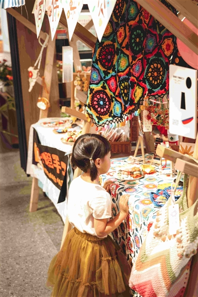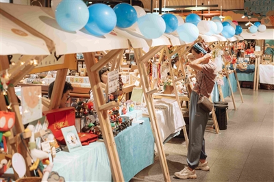 萧山新华书店市集筹备小组经过紧张周密的前期准备,在这个夏天把热闹好玩的市集带进书店,呈现在慕名而来的每一位读者眼前。非遗糖画摊位,摊主用小圆勺舀起铜桶中的糖稀,随着糖液缕缕洒下,栩栩如生的糖画形象便呈现在众人面前,令人拍案叫绝;布艺摊位,摊主现场展现灵巧手工,编制出各具特色的布艺制品,吸引了一大批读者驻足;绘画摊位,每一幅画,都好像能留住这个夏天;各式各样的摊位在书店里布置得错落有致,读者在其间买卖游玩,把对生活的创造与期待,把对美的诠释与表达,汇集在文化的空间中,让人与物在此相遇,让人与人在此交流,一起探索美好生活的定义。