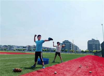 “今年暑假,我变化最大的地方应该就是肤色。”看得出,世纪实验小学206班的傅裕钦对于自己的“成就”颇有些自豪。暑假,他报名参加了棒球训练营。从早上8点多直到傍晚6点多结束,傅裕钦一直奔跑在球场上,一丝不苟地学习接球、接地滚球、击球、发球和跑垒等棒球动作与技巧。每天的训练结束之后,傅裕钦都累得不行,但又很有成就感,第二天还是一早就到训练场。在傅裕钦的妈妈看来,棒球是一项特别强调礼节和相互尊重的运动,球员进出球场会进行脱帽行鞠躬礼,赛前和赛后双方也会相互敬礼致意,棒球训练可不只是让傅裕钦得到了健康的肤色,还潜移默化地让他变得更加绅士。