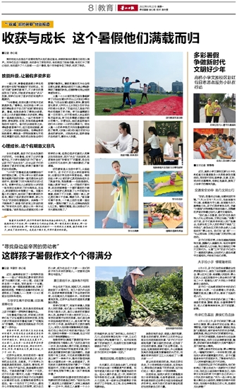 美好的时光总是在不经意间悄然从我们身边溜走,转眼间愉快的暑假已经进入尾声。同学们在这个假期里,有的参与了家务劳动,有的阅读了经典书籍,有的打卡了爱心活动,有的提升了个人技能……这个暑假,每个同学都学会了很多,收获了很多。