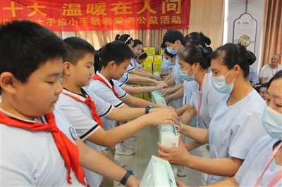 孩子们一边给敬老院的爷爷奶奶们发放爱心礼物,一边说着暖心的话语。稚嫩的脸庞上露出欢乐,感染了在座的老人们。