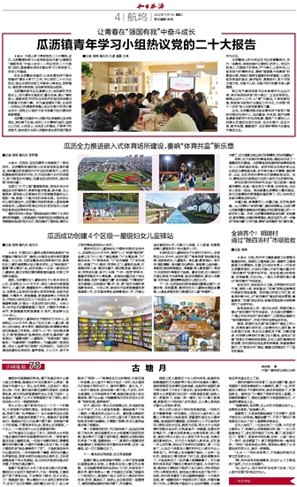 本报讯 为深入学习贯彻党的二十大精神,近日,瓜沥镇青年学习小组积极组织开展“让青春在‘强国有我’中奋斗成长——热议党的二十大报告”活动,提高青年团员的理论学习力和领悟力,夯实工作基础。