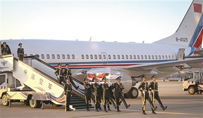 12月1日,江泽民同志的遗体从上海由专机敬移到达北京。 新华社发