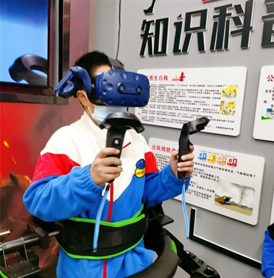 让我印象最深的是逃生体验,带上VR眼镜仿佛身临其境,直接体验消防逃生等实验。这里有个小房间,里面又黑又暗还有烟雾,幸好是有小伙伴一起。在这里我学会了正确的逃生方法,用湿毛巾捂住口鼻,俯身弯腰,靠墙迅速逃离到安全地带。