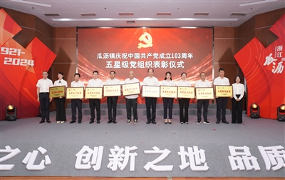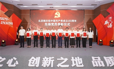 本报讯 6月28日,瓜沥镇以镇主会场+村社、企业分会场的形式,隆重召开庆祝建党103周年党员大会。大会组织全镇近万名党员集体重温入党誓词,对新增“光荣在党50年”老党员、2023年度党内先进集体和个人代表进行表彰。会上,镇党委书记姚鉴给与会党员、村民(群众)代表上了一堂生动的党课,进一步引导全镇各党组织和广大党员担当实干、砥砺奋进,奋力打造临空之心、创新之地、品质之城。