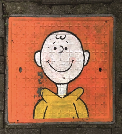 @黄氏人家 围墙和窨井盖上的卡通图画