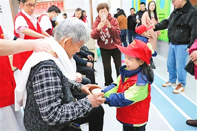 在社区的“雷锋集市”上,孩子们自发组成志愿队,邀请路过的爷爷奶奶们喝杯热茶歇歇脚。一杯杯小暖茶,不仅暖了长辈的心,也让孩子们尝到了服务他人的快乐。