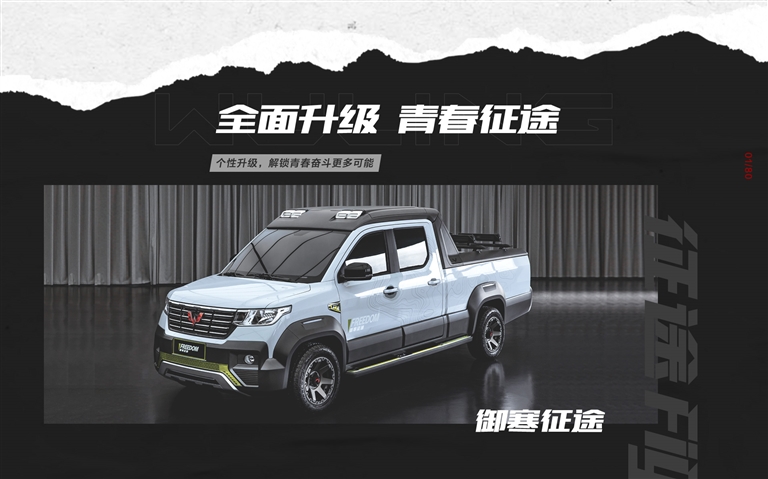 五菱征途共推出两款配置车型,新车采用了双排五座的设计,并衔接了一个后货箱,货箱两侧面边板可开启,与尾门形成“三面开”结构,提升装载便利性、实用性。安全配置方面,五菱征途提供主被动安全配置。新车还标配了主驾安全气囊、制动辅助系统、倒车雷达等,动力方面,搭载1.5L发动机,传动系统与之匹配的是5MT手动变速箱。