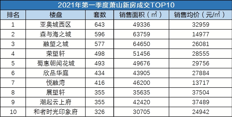 从2021年第一季度萧山新房成交TOP10榜单上可以看出,萧山多个板块都有热盘,各自美丽。