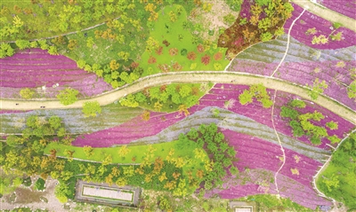 钱江世纪城机场路绿廊三期种植的近100万株芝樱,已经进入盛开期,桃红、淡紫、红色相互交织,构成了一幅色彩斑斓的唯美画卷。
