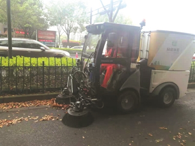 与平时相比,环卫工人的清扫量自然增加不少,好在有了“哈高清扫车”,搭档“吹风机”, “一吹一吸”间落叶无处遁形,大大减少了环卫工人的作业量。