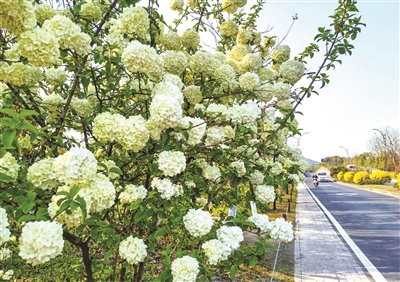 湘湖二期,眉山路两边有不少绣球花。最近进入了盛开期,花团锦簇,一片美好春光。