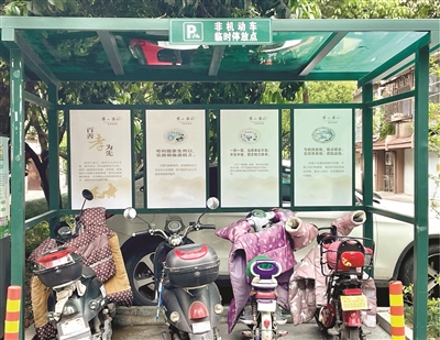 为此,有社区集思广益,对废弃的垃圾亭进行改造再利用,或成为非机动车临时停放点,或成为消防器材备用点。记者在回澜南苑社区就看到了几个由垃圾亭改造成的非机动车临时停放点,这里地面干净,四周贴上了家风家训、党建文化、文明健康等公益性广告。