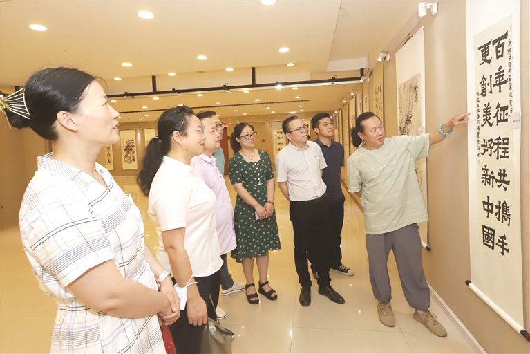 昨日,区政协“同心向党”庆祝中国共产党成立100周年暨萧山政协成立65周年书画展在萧山图书馆开展,展示全区上下凝心聚力高水平建设“亚运国际城·数智新萧山”的生动局面。本次展览将持续至6月9日。 记者 丁毅 杨圆圆 摄