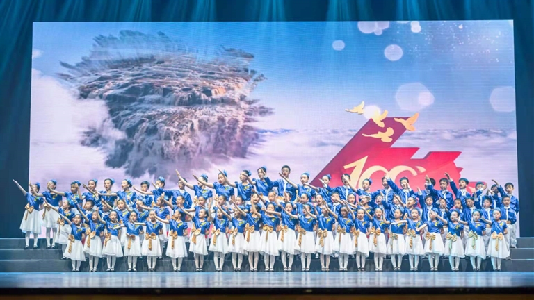 图为合唱节目《儿童团之歌》《我和我的祖国》