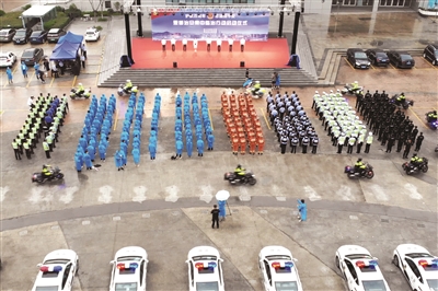 昨日,“护航百周年·忠诚保平安”夏季治安集中整治行动启动仪式在萧山剧院举行,吹响了萧山庆祝建党100周年安保维稳工作的冲锋号。 通讯员 谢洛炯 摄