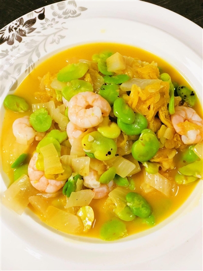 开胃酸白菜:能吃菜又能喝汤,这道开胃酸白菜就是这样一箭双雕。调制过的酸菜再配上鲜虾、蚕豆,佐以简单的调味,多重鲜味融汇在一起,也让菜的口感更丰腴。