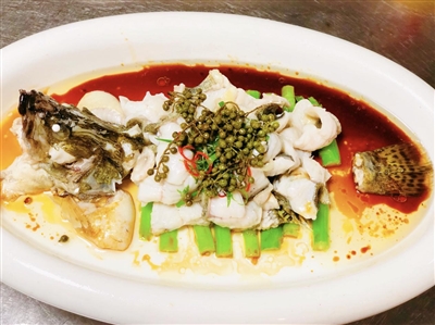 藤椒桂鱼:肉可以少,但鱼虾不能缺席。萧然海鲜的藤椒桂鱼,将传统的桂鱼烧法改良,加入微微麻微微辣的藤椒,藤椒的鲜香冲撞着桂鱼的新鲜。