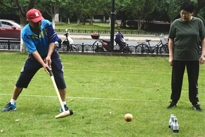 “木球的场地通常设在室外,比如绿油油的草地上,环境舒适,空气清新,专注打球时人与自然融为一体,感觉很好。”去年,倪华静第一次接触木球后,便瞬间爱上了这项运动。