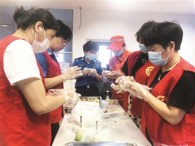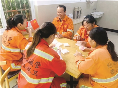 近日,区城管局组织了“月满中秋 情满环卫”月饼DIY活动,20名志愿者齐聚食堂,穿上红马甲、戴上手套,用心揉面皮制作月饼。短短一个小时,大家制作完成了400个冰皮月饼,并把这些寓意团圆和美满的月饼,送到环卫工人手中。一口咬下去,满满馅料,清甜可口,环卫工人连连说:“真甜,好吃!”