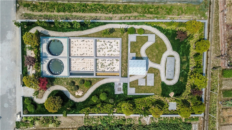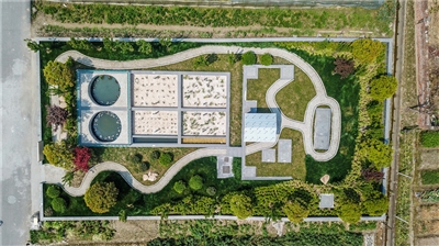 富春村净水公园分为两大功能区块——农污处理区和人工湿地,并利用中水回用技术,实现水资源的循环利用,寓意干净水源、净化水质、亲净(近)自然三大愿景。