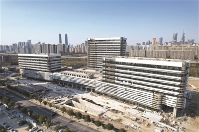 位于钱江世纪城的浙江大学医学院附属妇产科医院钱江院区项目一期工程,目前正在装修中,大楼初现雏形,计划明年年中投用。 记者 范方斌 摄