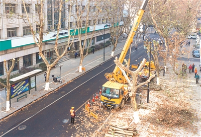 本报讯 进入冬季,垂柳、法国梧桐等树木开始进入休眠期。最近,体育路、人民路、萧杭路3条道路正在进行法国梧桐的修剪工作。等到春天到来时,树木又将迎来枝繁叶茂。